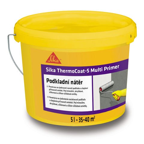 Sika ThermoCoat®-5 MultiPrimer je vodou riediteľný, jednozložkový penetračný náter pod omietky. Je súčasťou certifikovaných systémov Sika ThermoCoat® CZ a Sika ThermoCoat® Mineral CZ ako vonkajší tepelnoizolačný kompozitný systém ETICS.