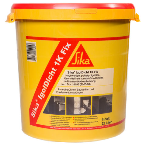 Sika® IgolDicht 1K Fix je hrubovrstvá stierka bez obsahu rozpúšťadiel na báze polymérmi modifikovanej bitúmenovej emulzie s pridaným polystyrénového