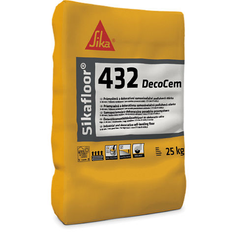 Sikafloor®-432 DecoCem je predmiešaná prášková zmes, obsahujúca špeciálne cementy, triedené plnivá a kompatibilné prísady. Používa sa na vytvorenie vysoko tekutého čerpateľného samonivelačného podlahového poteru (stierky). Jednoduchý spôsob zhotovenia spolu s rýchlym nárastom pevnosti umožňuje kompletné zhotovenie podlahy v krátkom čase.
