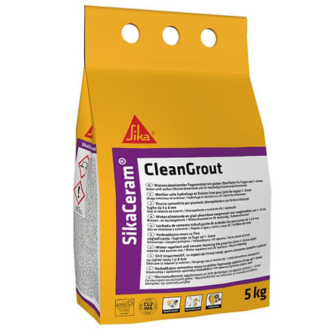 SikaCeram® CleanGrout je cementová škárovacia malta na výplň škár šírky 1-8 mm na podlahách a stenách. Prímesy, obsiahnuté v prášku, zaisťujú ochranu proti rastu plesní, baktérií a húb a zabezpečujú farebnú stabilitu, odolnosť proti oteru, vodu odpudzujúcu schopnosť. Vhodné na použitie do interiéru a exteriéru.